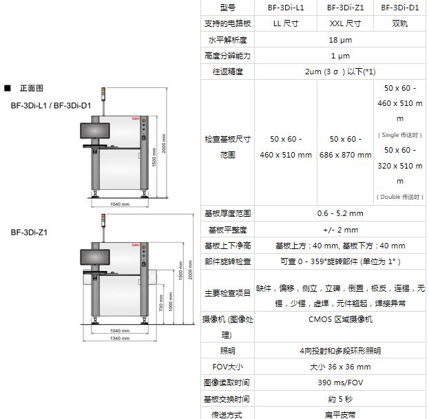 SAKI在線在線AOI自動光學檢測儀BF-3Di參數簡介: