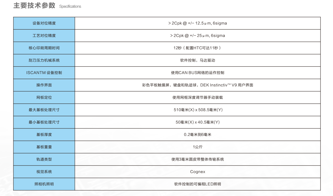 DEK全自動絲網印刷機具有先進的上視/下視視覺系統,獨立控制與調節的照明高速移動的鏡頭。精確地進行PCB印刷電路板與網板的對位,從而將錫膏或紅膠按照網板的開孔精確的涂敷在印刷電路板上。