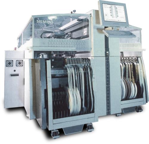 西門子S系列屬90年代末2000年代初的產品,屬于多功能中速機,可貼元件范圍:0402到18.7mm X 18.7mm,理論貼片速度:20,000(粒/小時)
