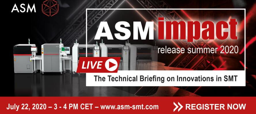 ASM將于7月22日下午3點至下午4點在名為“ ASM Impact – 2020年夏季發布”的直播中展示SMT生產的最新硬件和軟件版本。除了專家聊天之外,用戶還可以在分拆會議上與ASM專家討論更詳細的問題。