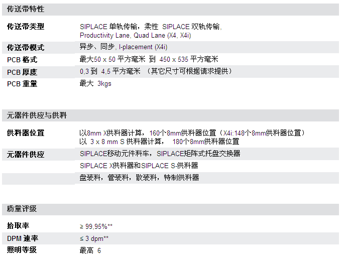 我們的高端平臺SIPLACE 4Xi—實際性能世界紀錄保持者,依照IPC標準測試達到了102,000cph的速度等級,這個速度相當于120,000cph的SIPLACE標稱速度。從超快的20吸嘴收集貼裝頭和數字成像系統到i-Placement、 Productivity Lane和Quad Lane等生產理念再到來自SIPLACE專家的頂級服務,這些創新和服務使SIPLACE X 系列成為高性能方面的終極解決方案。